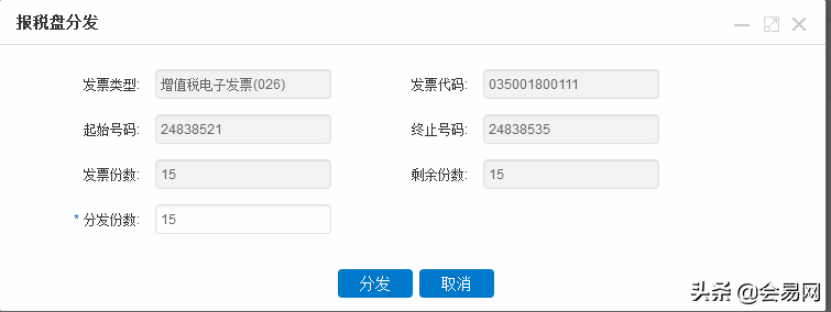 5、输入分发份数,点击“分发”,系统提示分发状态为“成功”,即表示报税盘分发完成。如下图所示: