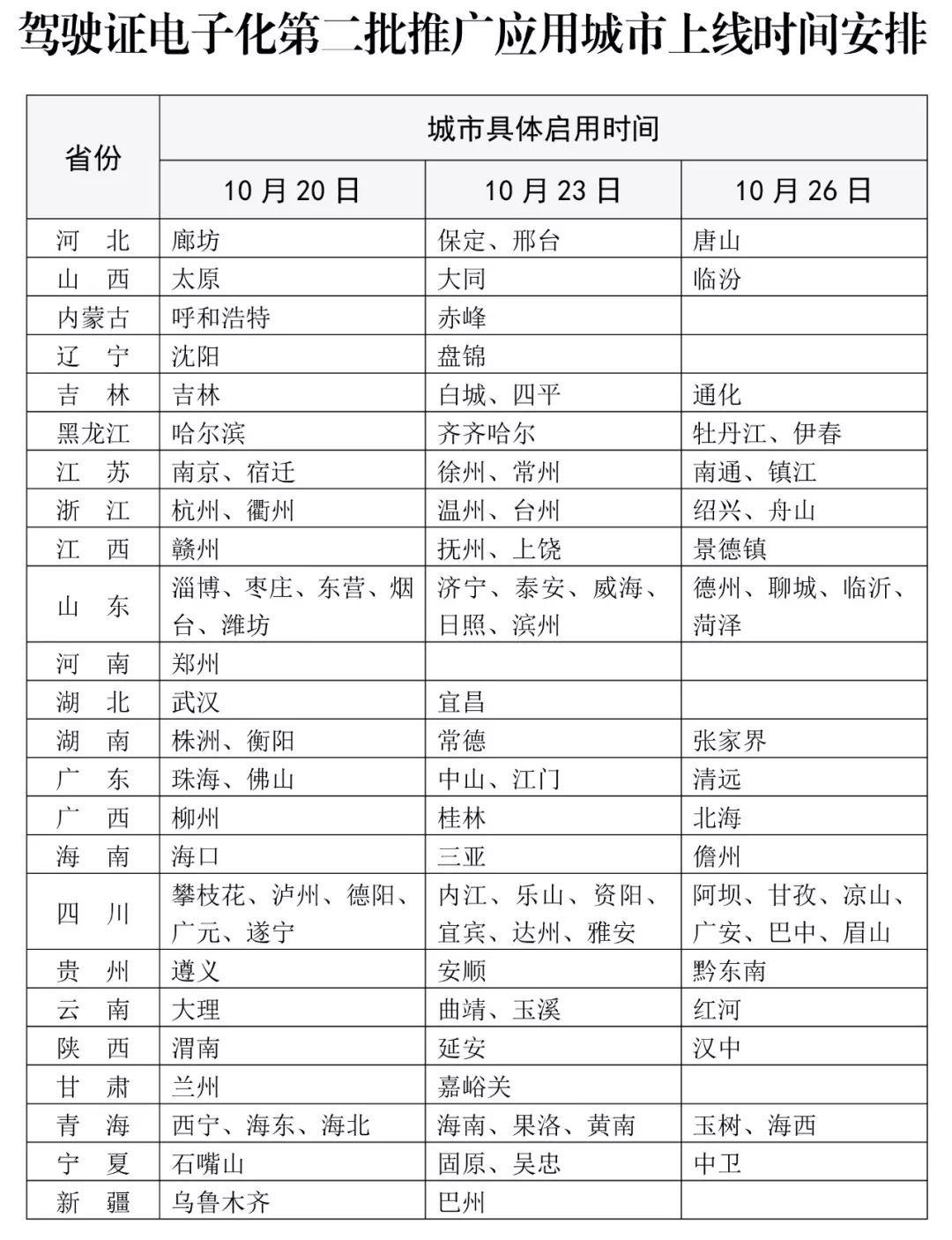 10月20日起 驾驶证电子化将在这110个城市第二批推广应用