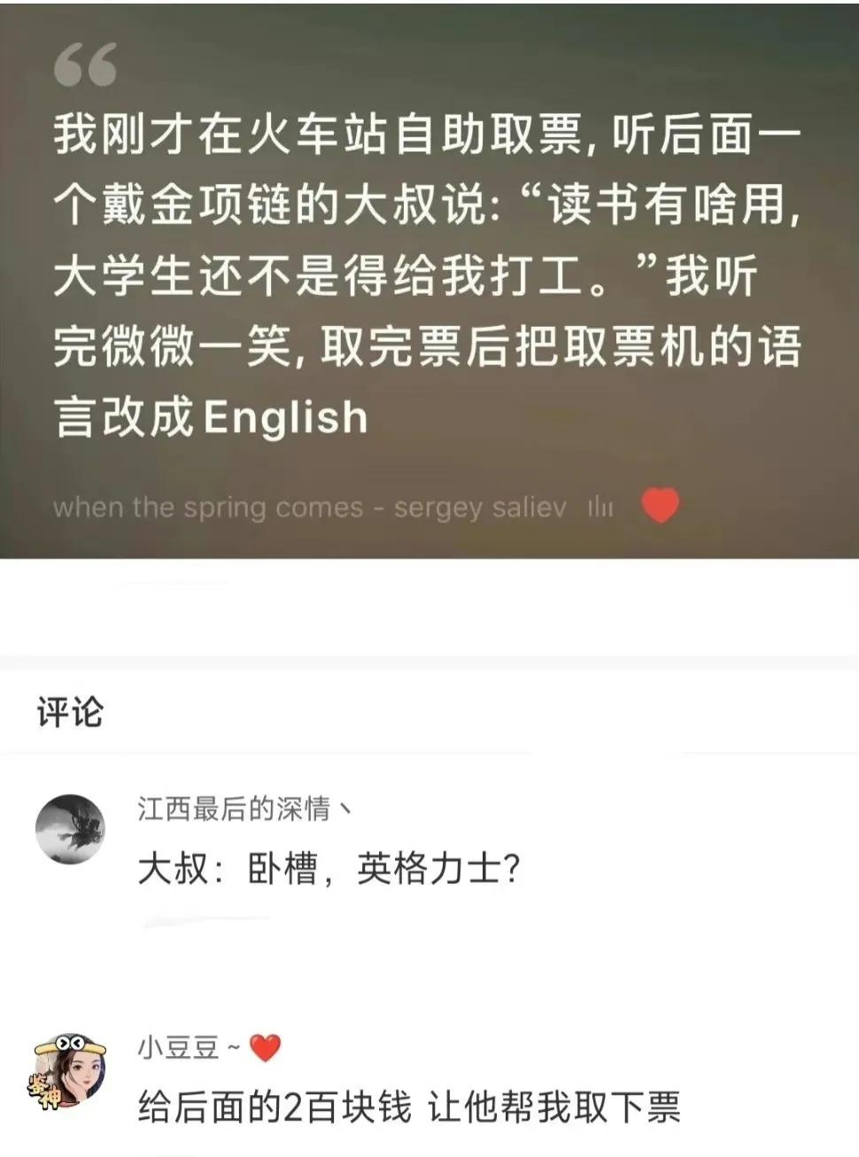 然后你挣了两百块,给取了票[思考]