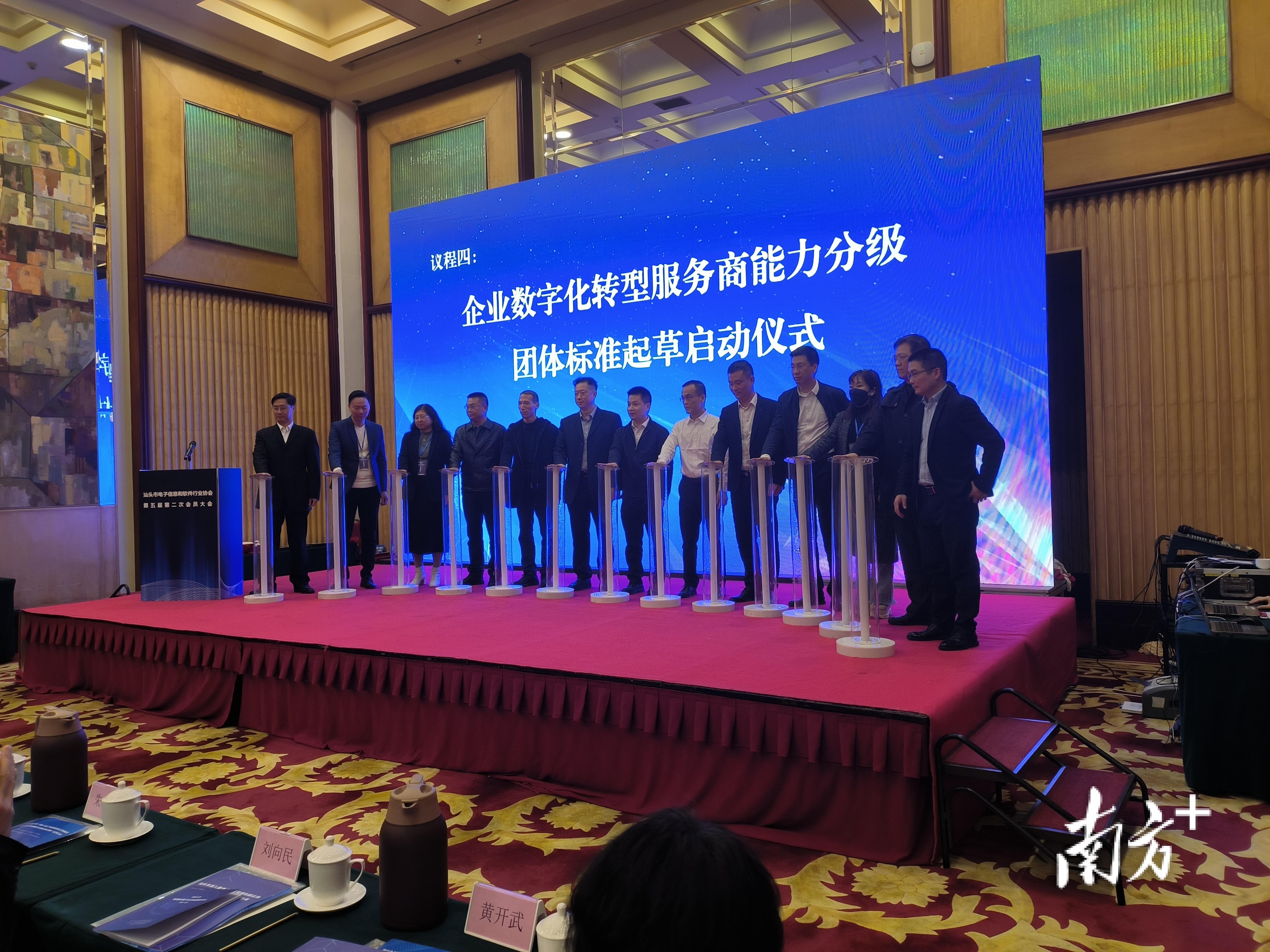 当天下午同时举办了汕头市电子信息和软件行业协会第五届第二次会员大会,宣布起草《企业数字化转型服务商能力分级团体标准》。据协会秘书长滕丽秋介绍,该团体标准起草发布后,将进一步推动数字化转型企业与服务商之间的供需精准对接,促进汕头市软件和信息服务业企业与制造业企业融合发展,改善中小微企业数字化转型困难、数字化转型服务商水平参差不齐的现状。