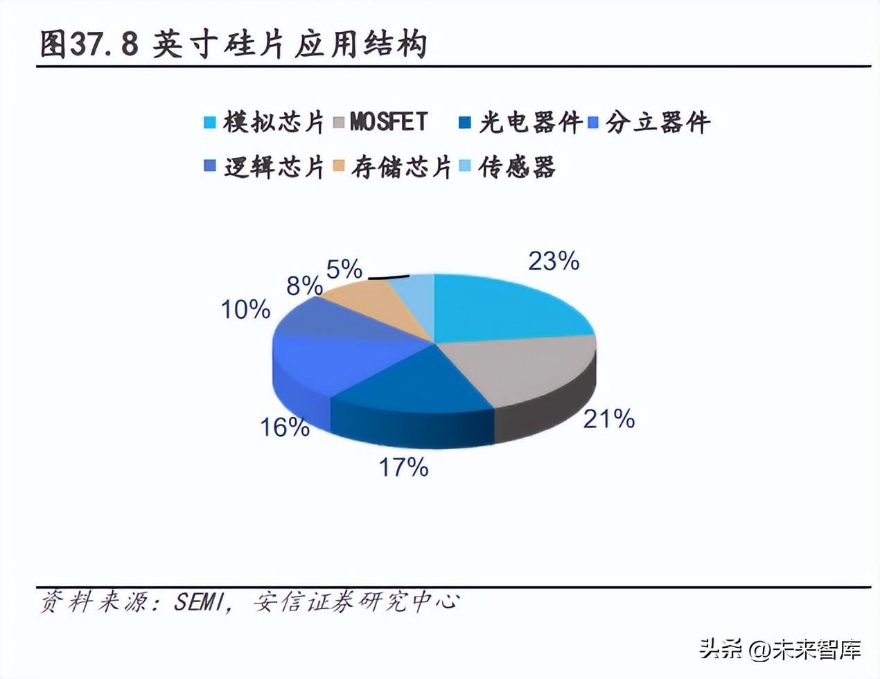 国内本土晶圆厂产能占比持续提高。根据 SEMI 的统计,目前 12 寸晶圆厂的建设 以中国台湾、韩国和中国为主。从全球来讲,从 2020 年至 2024 年将持续提高 8 寸晶 圆厂产能,预计增加 95 万片/月,增幅达 17%,达到 660 万片/月的历史记录。2021 年 8 寸晶圆产能中国占比为 18%,全球第一。今后 5 年中国产能将会持续上升。