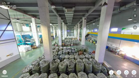 在“云看馆”VR场景中,市民朋友们可以云游参观伟翔特有的深加工处理完整流程;实现走廊区域、仓储区域、环保设施区域和物理破碎车间的全景线上参观。