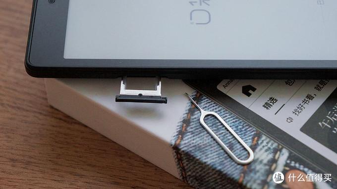 口袋阅左侧是 SIM 卡和扩展卡的二合一插槽。这也是这台阅读器和其他品牌阅读器最大的不同了,可以接打电话和收发短信,可以作为备机使用。