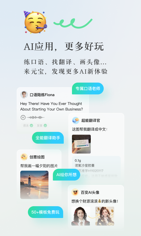 除了效率工具外,元宝联合创作者们,为用户提供了更多有趣、实用的 AI 应用: