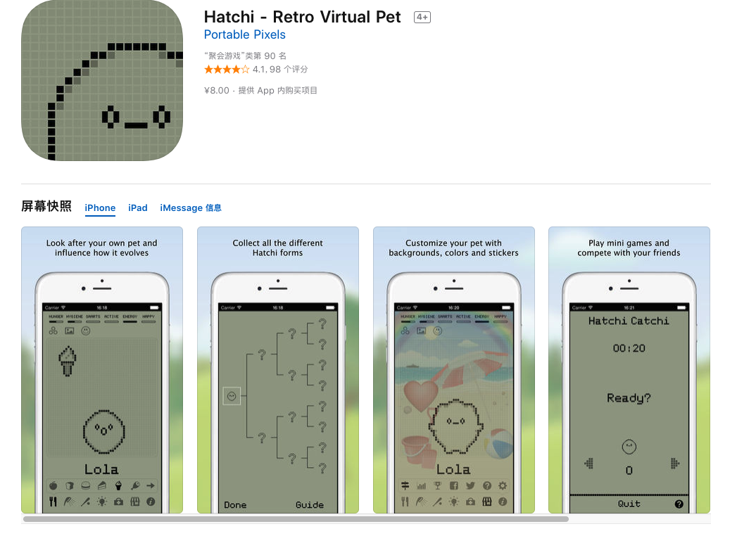 对比起已经停掉的「QQ宠物」,Hatchi 电子宠物不要太好养。正常的喂食、游戏、学习等功能,不需要花费金币,也不会容易那种必须「定时氪金」的病。