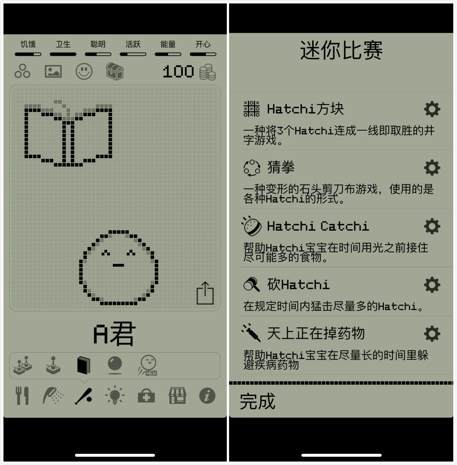 Hatchi 的操作思路非常符合逻辑,基本上就是饿了就吃,定期洗澡,病了打针。除此基本温饱之外,还有其他「养成」项目。