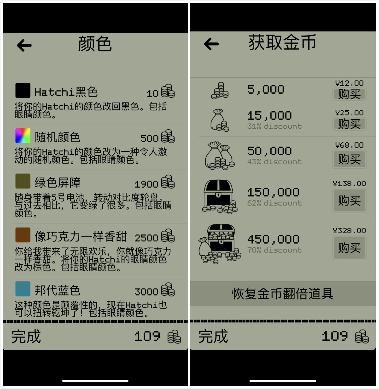 虽然画面还原了电子宠物机,但毕竟是一款 app 游戏,功能丰富,可以「自定义」的点很多很仔细。如果要完全体验游戏所有玩法,只通过 app 内游戏获得金币,是远远不够的。
