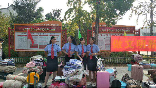 团建带动学生自治、班级治理三管齐下的校园管理模式是职教集团的又一个特色。新生入校,学校团委、青年教师读书班、星火学生志愿者有400多人积极参加接待新生工作。被评为“黄冈市五四红旗团委”的职教集团,团建工作是非常扎实的。学校有团总支6个,团支部86个,团员占学生比例47%,团干部占团员比例16%,学生会干部占学生比例4%,班干部占学生比例15%。建立健全学生会干部选拔管理机制,每年新生军训后,校团委开始宣传招录新干部,各班团支书组织报名,统一初试面试,复试交流,确认录取名单后实行1-3个月的试用期,通过新老干部传帮带、班级反馈、班主任指导、团委书记老师参与辅导、观察、考核,最后筛选合格者成为学生会成员。学校在全体学生会干部中深入开展“我的中国梦”、“青春与信仰对话”、“劳动、创造、奋斗”等主题教育实践活动,通过请团市委书记、校党委书记、校长、青年教师宣讲交流,典型宣传等多种形式,提高学生会的战斗力、号召力、凝聚力,夯实学生会干部的思想道德基础,激发学生干部的时代责任感,引导他们努力做到勤俭节约、诚实守信、助人为乐,让他们带动更多的同学敢于有梦、勇于追梦、勤于圆梦,为中职生群体添加青春正能量,使学生会干部充当起团学工作和活动的主角。他们坚持服务学生的工作生命线,问需问策问效于学生。这一群从学生中来又服务于学生的可爱的人,是中职一道美丽的风景线,他们组成国旗班,每一次升旗都是一次爱国主义教育的洗礼,他们坚守食堂值日岗位,保障就餐秩序;他们督察校园卫生,扮靓校园扮靓自己;他们是一个个小指导员,以身作则、评比班级各项指标,促进校园班级管理;他们又是小宣传员和小组织委员,组织各种活动,丰富校园文化生活;他们也是小战斗员、安全员,日以继夜地参加巡逻,参与宿舍管理,杜绝校园安全隐患。在全校形成了全时段由团委直管、班主任监管、学生自主管理相结合的三管齐下管理模式。