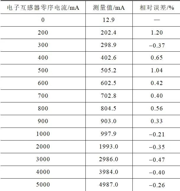 以零序电流为例,柱上断路器与FTU间的连线采用方案1中的单屏蔽双绞线,屏蔽层在FTU端接地;隔离方案采用方案2中的微型互感器隔离,AD转换芯片采用方案4中的MAX11046芯片。交采回路经改进后与电子式传感器联调结果见表3。测量精度满足0.5级互感器的比差要求(<0.5% 。