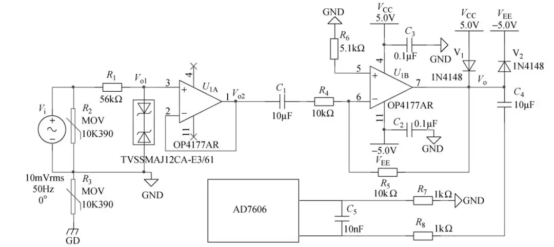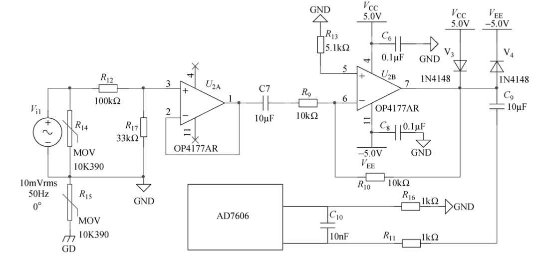根据第1节的现场描述可以判断电子传感器及AD芯片等后级电路是正常工作的,那么故障就发生在交流信号的保护电路和调理电路。