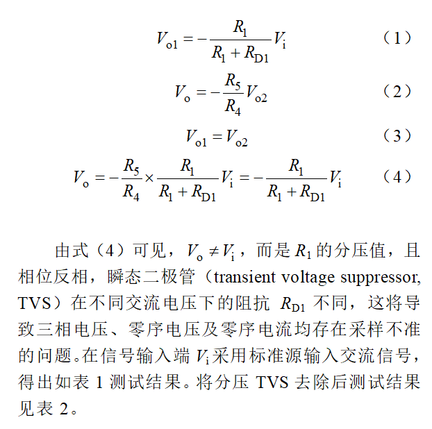 综上所述:①三相电压采样电路、零序电压采样电路和零序电流采样电路输入端串联的限流电阻与TVS形成分压,影响了采样精度;②电路中采用的防护器件的等级不够,对高压侧串入的干扰不能很好的防护。