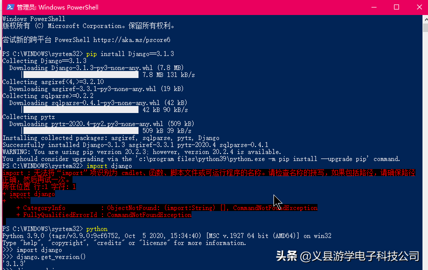 大家好,这里是义县游学电子科技.今天带来:django框架如何安装和建立一个项目应用