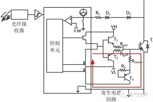 IGBT芯片的门极驱动电路如图3所示,VH和VL分别为+15V和-8V,且具有相同的中性点,+15V电压可以使IGBT迅速导通,-8V电压可以使IGBT关断时不受米勒效应的影响,从而可靠关断。