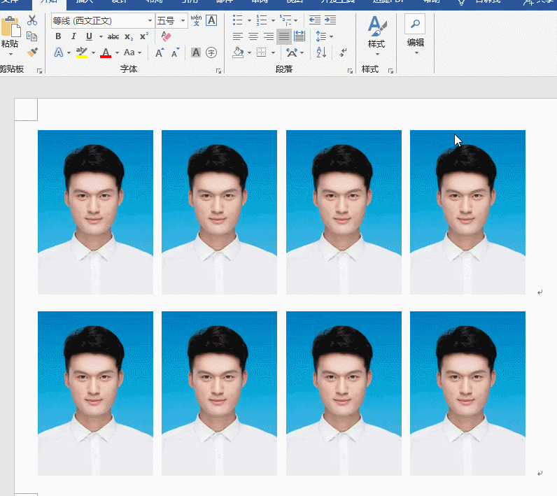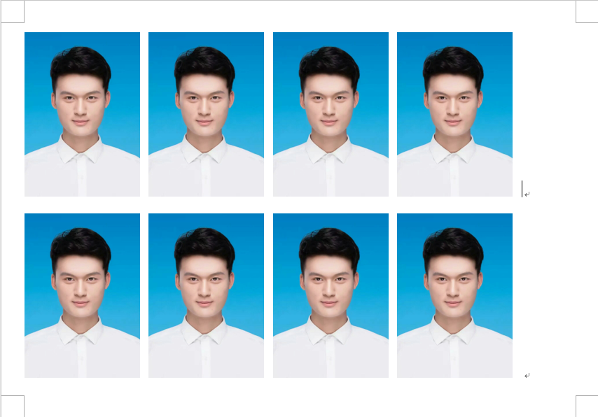 3.第一张证照修改完成之后,然后按1~2个空格,然后复制第一张证件照,依次排列下来,每行4张照片即可,最后用相片纸将其打印出来即可。