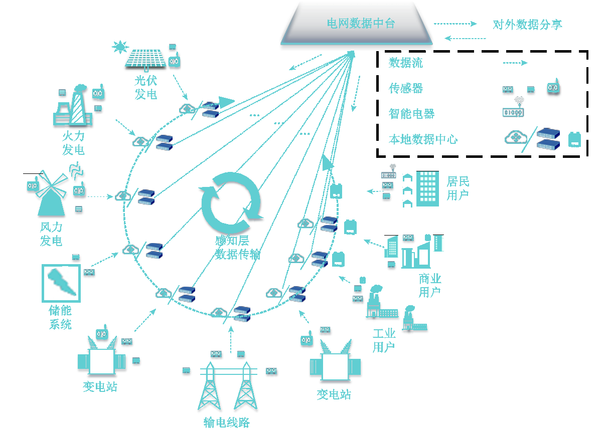 在电力物联网中通过使用更多的感知设备,可以对电力设备运行状态、电网中的能量流动等进行更加深入的了解,并有助于实现用电环节(分布式电源、充电桩、居民用户等)的信息采集、能效管理、智能电器等双向交互服务。