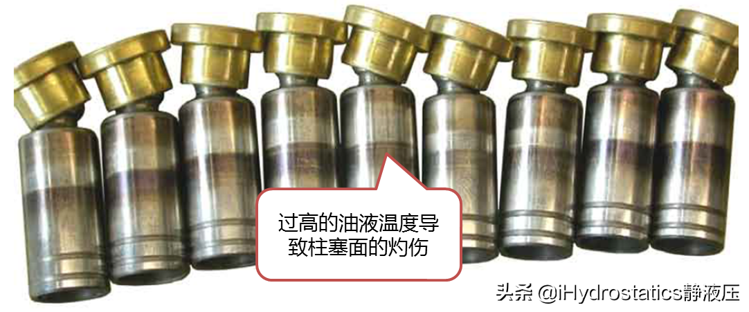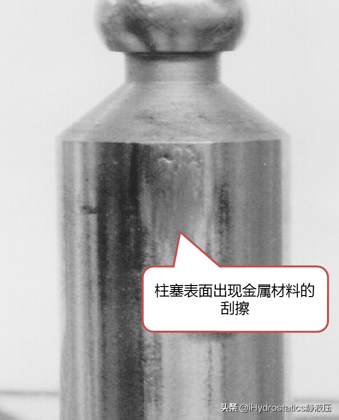 如果液压系统的散热功率不足,会导致油液的工作温度超过元件的许用范围,从而使得油液粘度变稀,造成运动面间产生的热量不能及时散失,金属面便会产生灼伤的现象。此种现象在柱塞表面表现的尤为明显。