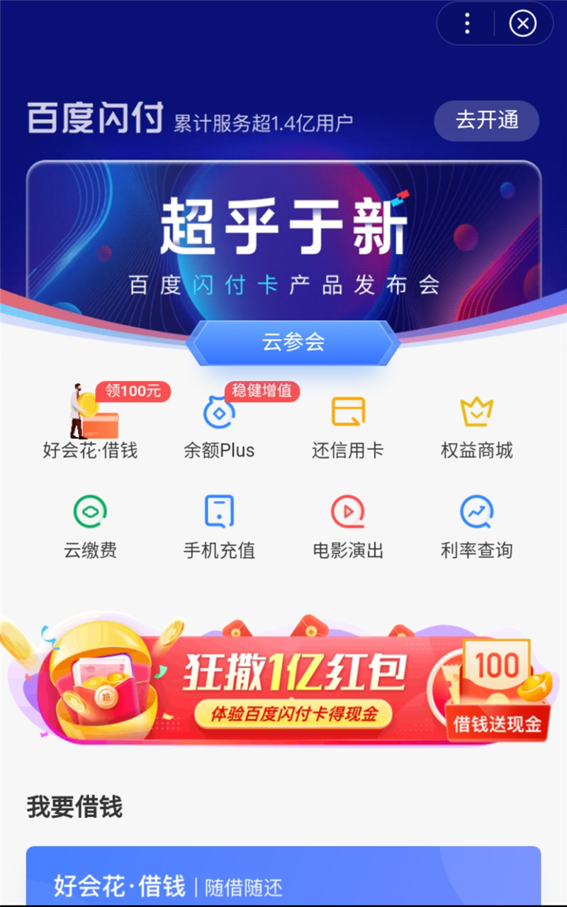 发布会上,“百度闪付卡”产品负责人李永煜在现场发布了三款产品,分别是普惠信贷产品“好会花”、零钱理财产品“余额Plus”和生活权益产品“小鲸喜”,并以相关活动回馈用户。