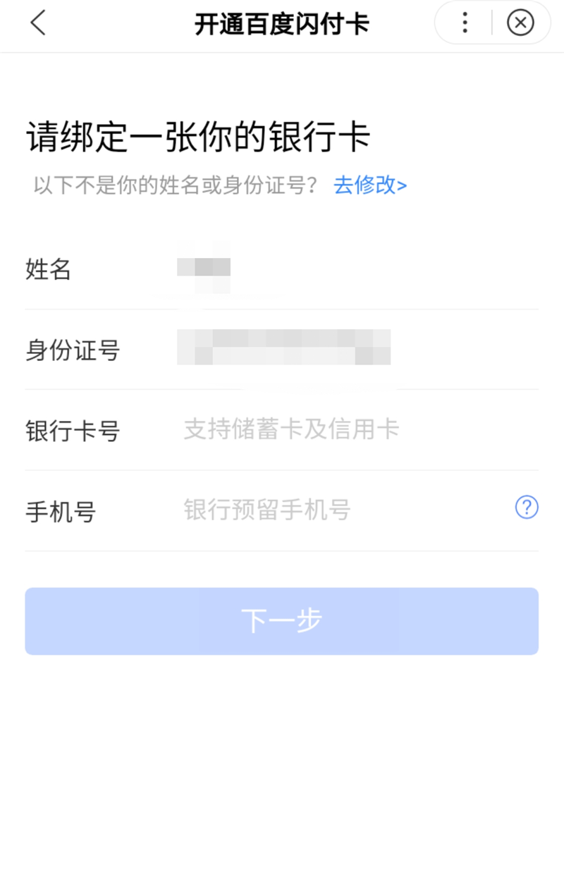 百度闪付卡开通时,需要绑定一张银行卡。河北日报记者 赵泽众截图