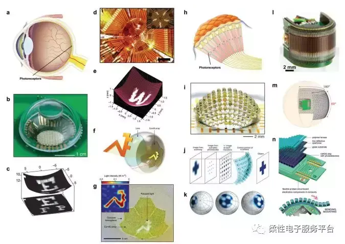 神经科学和认知心理学研究表明,80%以上外部世界的信息通过视觉进入大脑。 作为最精细的器官之一,人眼是一个复杂的视觉系统 ,它根据电磁射线的感知处理视觉输入信号。入射光线聚焦在视网膜上,感光器杆和视锥细胞进行接收。使用光响应半导体器件,如光电二极管和光电晶体管,可以在电子系统中模拟这些生物细胞。最简单的 光电探测器是p-n结光电二极管,这种半导体器件吸收光子以在耗尽 区中产生电子-空穴对,并将它们转换成电流。数码相机利用这种光电探测器的阵列作为图像传感器。就像 人眼一样,数码相机将入射光线聚焦到 图像传感器阵列上以获取数字存储器中的照片。虽然 数码相机是模仿 电子设备的成功示例,但它尚未完全集成 眼睛的关键特征。因为眼睛的后部是圆形的,所以 光感受器以半球形状铺设。在这种 形式下,光感受器可以捕获具有广角视图,高分辨率和低像差的图像。 然而, 数码相机中的平面焦平面阵列需要透镜光学系统来消除轴外像差,如像散,弯曲。 此外,其他生物眼,如 在节肢动物中发现的复眼,在凸半球形结构中具有光感受器(ommatidia),以获得更宽的视角。无论 眼睛类型如何,所有光感受器都以曲线结构制备。