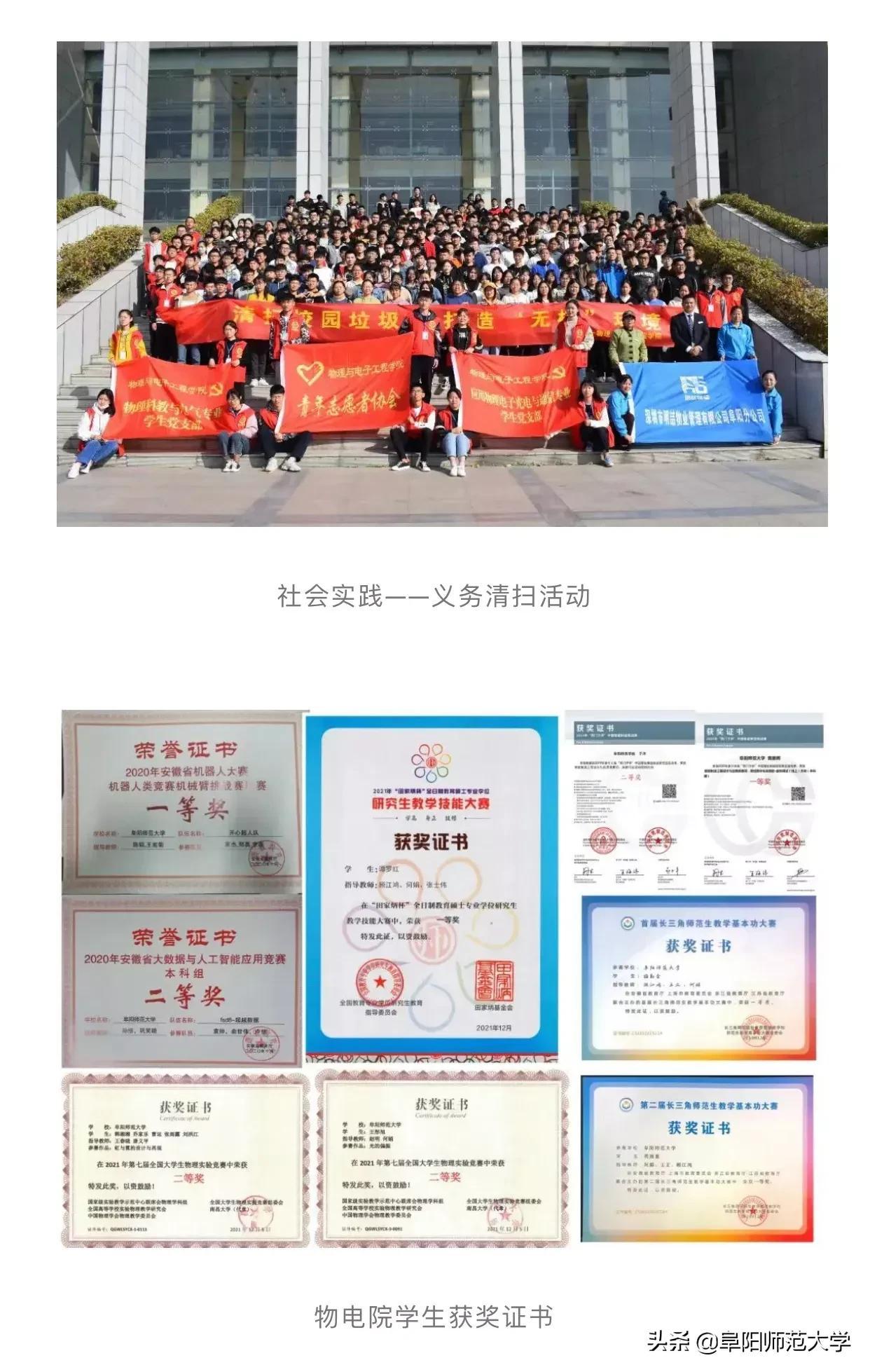 现有教职工81人,其中教授11人、副教授17人,具有博士学位32人,硕士生导师34人。在校本科生1700多人,硕士研究生81人。近年来,获批国家自然科学基金11项,省部级项目几十项;获安徽省教学成果一等奖4项,安徽省自然科学三等奖2项;学生获得包括国家级特等奖在内的省部级以上学科竞赛奖励100余项。现有教育部-中兴通讯ICT产教融合创新基地、安徽省物理与电子实验教学示范中心等实验实训平台4个,建有国家级大学生校外实践教育基地1个。拥有信息功能材料结构与器件安徽普通高校重点实验室、阜阳市农业物联网发展研究院等高水平科研平台3个。