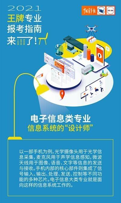 以一部手机为例,光学摄像头用于光学信息采集,麦克风用于声学信息感知,微波天线用于图像、语音、文字等信息的发送与接收。手机内部的核心部件则集成了信号输入、输出、处理、发送、控制等不同功能的多种芯片。电子信息大类专业就是面向这样的信息系统工作的。