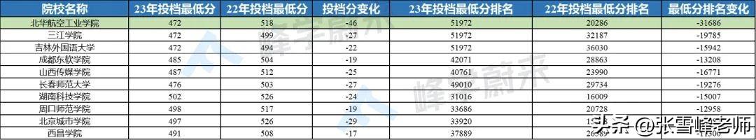(图1-5 2023年江西文科一批最低分排名跌幅明显的10所院校汇总)