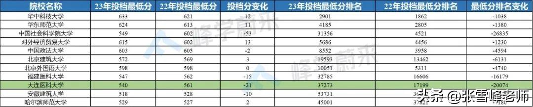 代表院校如:首都医科大学、陆军军医大学、南方医科大学、重庆医科大学等临床类专业作为特色专业的医科类大学,中国药科大学、湖南中医药大学等中医类、药学类专业为特色专业的院校亦有不同程度的上涨。但值得注意的是,大连医科大学、福建医科大学、河北医科大学等医学类高校的录取位次有较明显的遇冷,存在22年过热导致家长考生报考迟疑的部分因素。可以判断,医学类专业相关院校整体上涨,局部不甚明朗,存在两极分化的情况 。