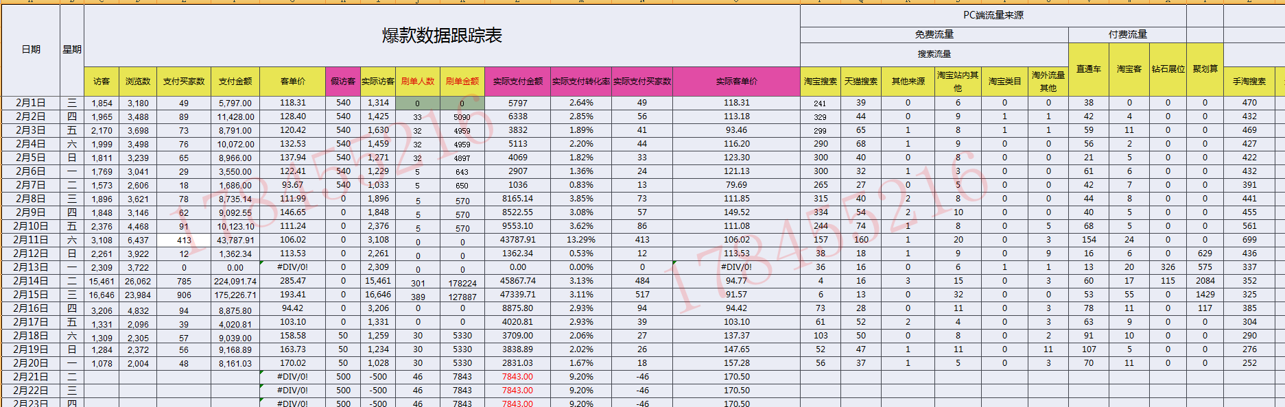 3)爆款群产品的访客数,转化率,IPV,好评晒图,差评,PC和无线端搜索关键词以及关键词转化率计入表格。
