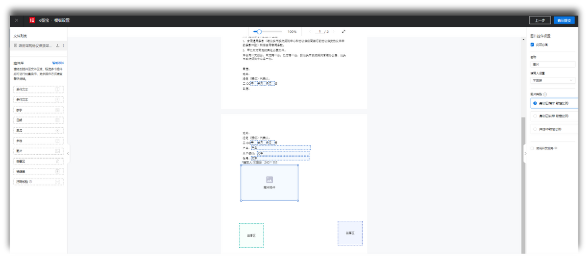 e签宝提供丰富、规范的合同范本,企业法务只需简单修改即可直接作为合同模板使用。同时,e签宝将AI技术融入模板,支持智能识别信息填写区、签署区,智能识别表格等功能,并提供身份证、图片、单选、多选、多行文本等多种业务组件,满足各类业务场景需求,让合同数字化更高效。
