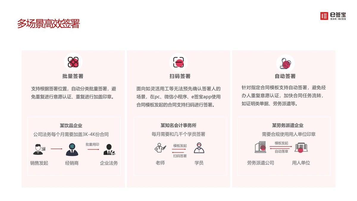 e签宝的智能合同方案帮助该客户实现了高效签约,也满足了其两大诉求: