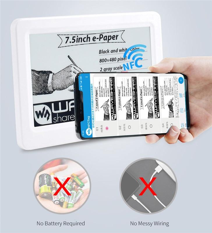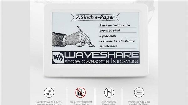 IT之家3月19日消息 NFC通常仅用于移动支付或电子门卡等功能,一家名为“ Waveshare”的公司开发了其另一种用途,该公司研发了一款7.5英寸的电子墨水显示屏,该显示屏完全依靠NFC传输获取其数据和能量,没有电池,也不需要有线电源连接。
