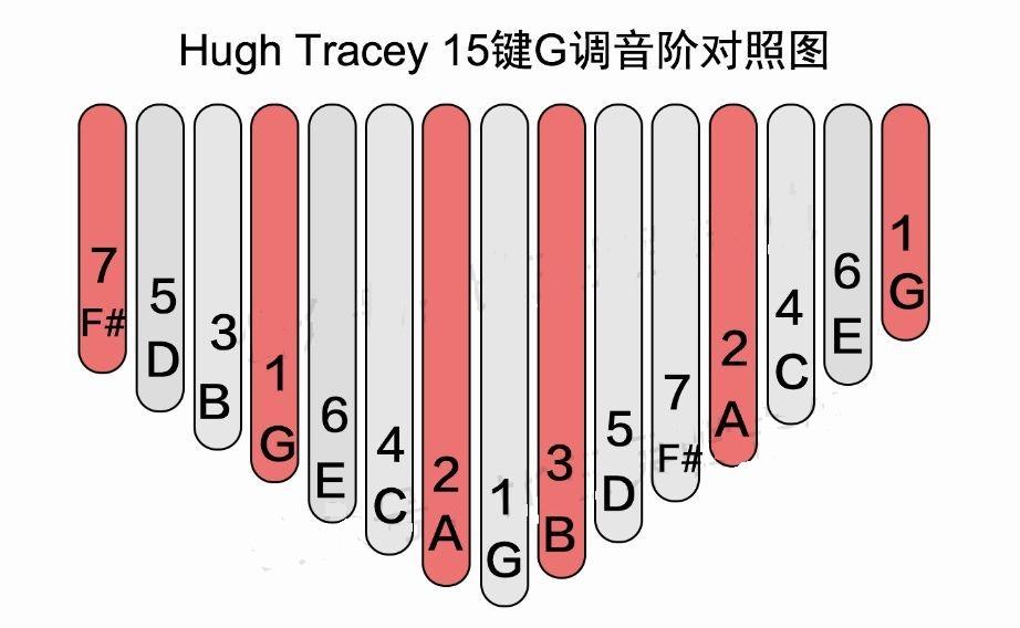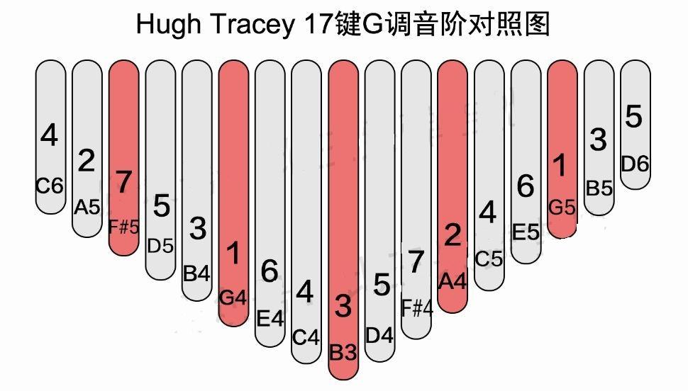 一般来说绝大多数的琴都是C调17键的,也有17键G调和15键G调,他们的音阶如下: