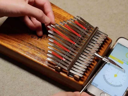 一般拇指琴出厂的时候都是会把音调好,但是难保磕磕碰碰把音弄不正,想要琴的音色优美,就必须把音调准。我们需要用调音器来帮助我们完成调音工作 。