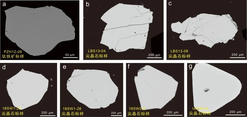 图1 钛铁矿和尖晶石标样BSE图像
