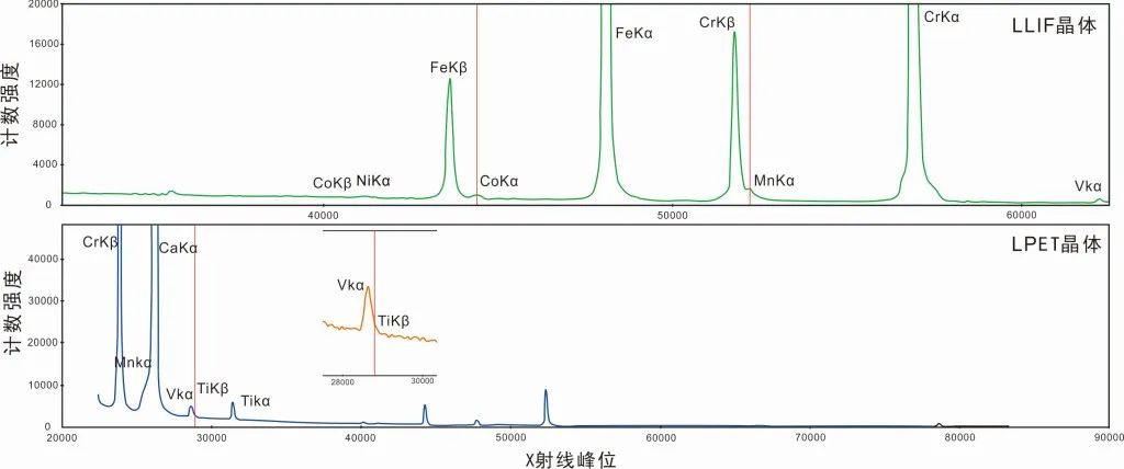 图2 电子探针测试尖晶石微量元素的峰位干扰谱图分析