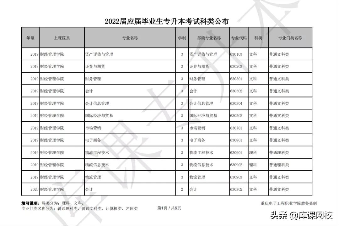 不清楚自己专科专业属于文科还是理科,不确定可以报哪个科类的同学,可以咨询你专科院校的辅导员或者教务处老师,学校会确定你的专科专业科类。目前已经有院校公布了2022年重庆专升本报考科类,大家先参考。其余各院校2022专升本信息,持续关注公众号“库课专升本”通知。