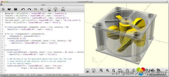 OPENscad是一款开源软件,它基于代码编程构建模型实体,由程序代码控制模型的形状与大小,可以说是一款真正意义上的完全参数化建模软件。对广大程序员朋友来说是非常有意思也值得尝试的软件。