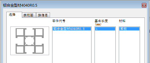 接着我们可以试着“从资源中心打开”刚才发布的型材,发现并不能像默认的型材一样输入长度,如下图。如果需要实现,则要对发布的族表内容进行编辑,在“资源编辑器”中进行操作。