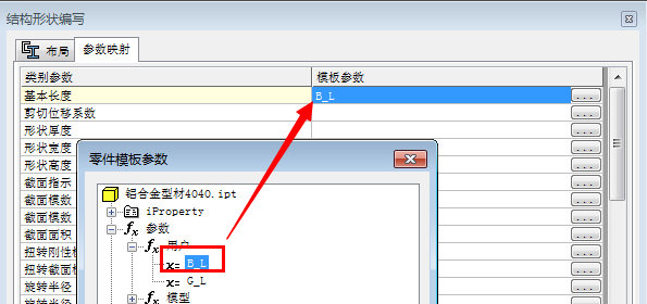 基本长度参数:添加“B_L”=该参数,并将其映射到“结构形状编写”对话框的“参数映射”区域中定义的“基本长度”项。