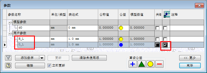 “G_L”参数使用“1mm”作为设置。并将其设置为导出参数。