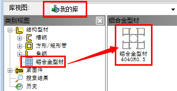 第五步,因为创建好零件后就要发布到库里,发布之前需要在自定义的可读写库中添加一个类别,比如在“我的库”中的“结构型材”类别下添加一个名为“铝合金型材”的类别。