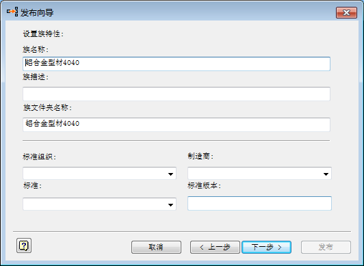第十一步,如下图,根据需要填写,其中“族名称”和“族文件夹名称”默认已填写,单击“下一步”。