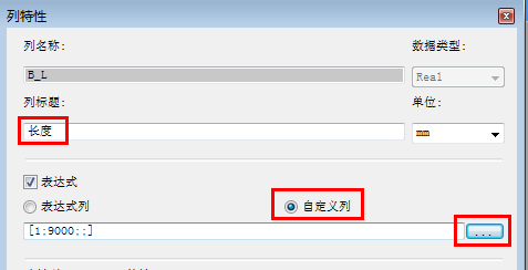 在“基本长度”列标题处右键选择“列特性”,其具体设置按图所示,“列标题”改为长度,选择“自定义列”,并指定范围。