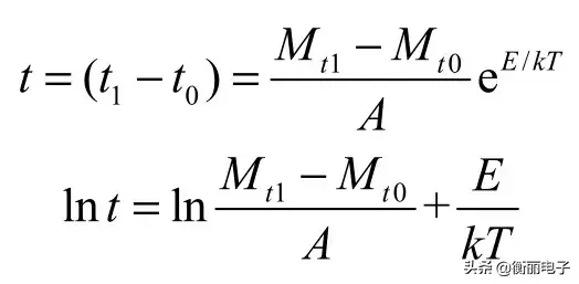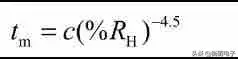 柏克(Peck)和席尔德(Zierdt)通过试验研究得出该失效机理的激活能为 0.54eV,并给出了器件寿命(tm)与相对湿度(%RH)间的近似关系式: