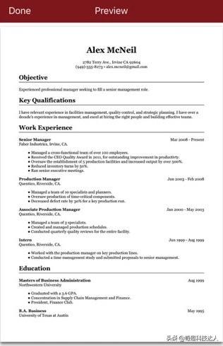 该类别中有很多品种,很难说哪一个最好。大多数用户使用VisualCV Resume Builder肯定不会错,一个易于使用且功能强大的应用程序。我会推荐适用于iOS的Resume Star和适用于Android用户的Resume Builder应用程序。当然,应该根据你的职业尽可能的展现你自己,希望你能另谋高就。