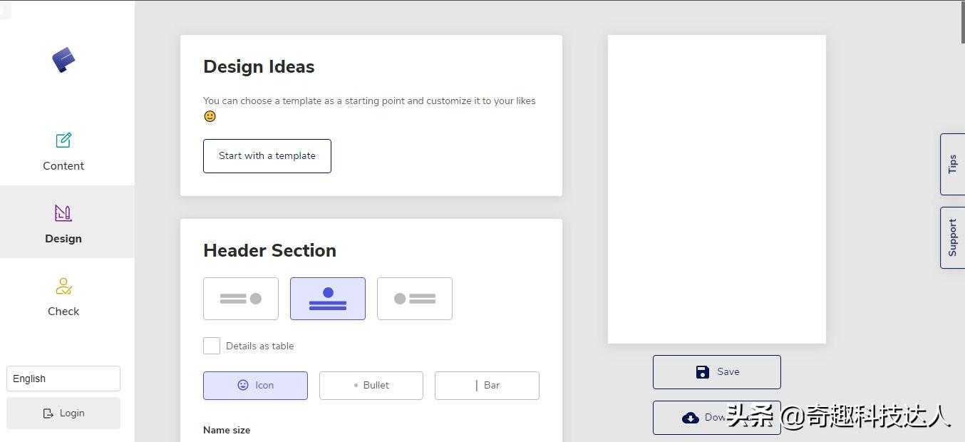 FlowCV不是智能手机应用程序,而是只要你具有Internet连接就可以在智能手机上正常运行的网络应用程序。它具有几乎所有的功能,例如添加照片,PDF简历,免费模板等,可以使用以前的简历生成器应用程序。最重要的是,它在构建简历时提供了更多的所见即所得方法。