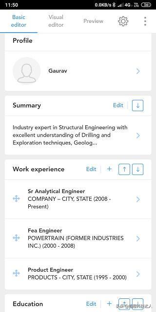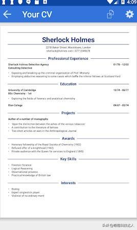 适用于Android智能手机的最好的简历生成器应用程序之一,可让你与朋友共享简历以获取反馈。但是,他们没有像我们上面讨论的VisualCV这样的活跃社区。你可以使用多个简历建立多个配置文件。