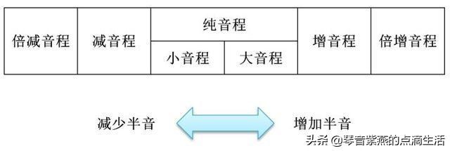 因为刚才我们提到的音程只是大、小、纯三种音程,还有其他一些音程是用增减来定义的,这些音程在上表中查不到度数和半音的对应关系,只能通过增加或减少半音得到。