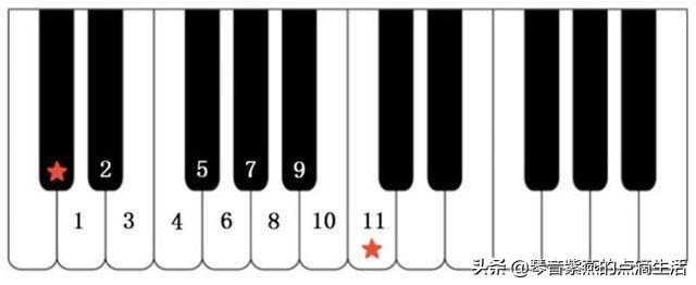 第二步:数半音,要注意到#B在键盘上实际弹作C,一共是11个半音。
