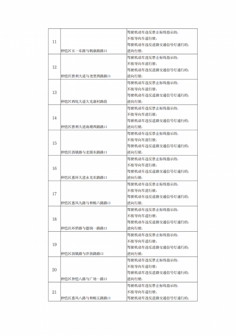 8月21日,南都记者从惠州交警处了解到,惠州市辖区内近期启用31个视频监控点位(俗称“电子警察”),记者发现,启用的31个视频监控主要位于仲恺区,用于抓拍驾驶机动车违反禁止标线指示的;不按导向车道行驶;驾驶机动车违反道路交通信号灯通行的;逆向行驶。